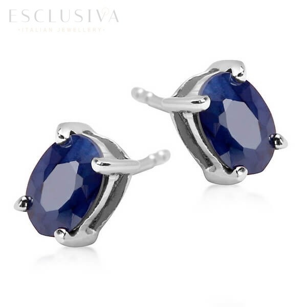 | fot. małe srebrne kolczyki z pojedynczym szafirem z certyfikatem |